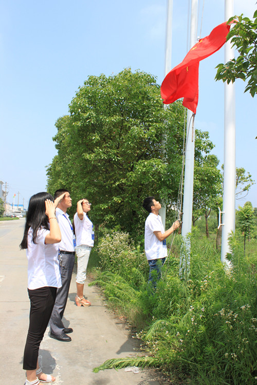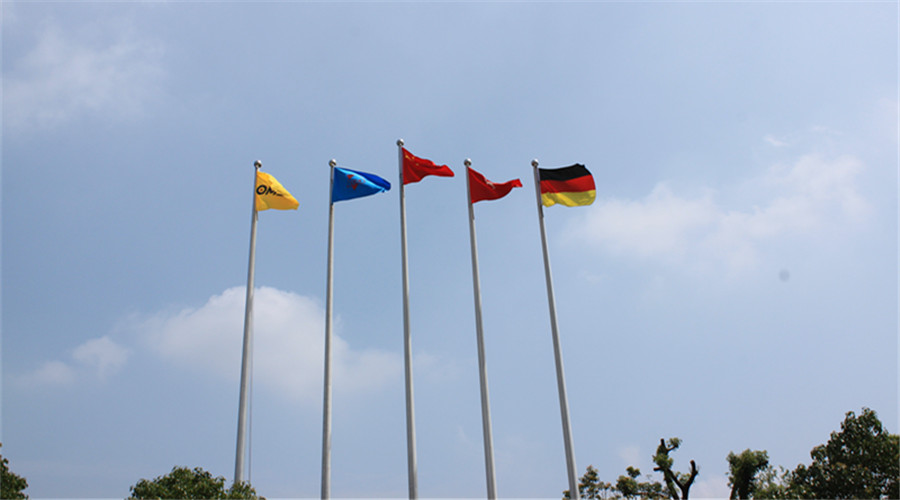 7月1日,是中国共产党的生日。在这个喜庆的,阳光明媚的节日里,奥玛斯电梯公司举行了较隆重的升降旗仪式。奥玛斯公司的旗列由五面旗子所组成:它们分别是代表合作双方的中国五星国旗,中国香港紫荆花旗,德国三色旗,奥玛斯公司的厂旗OMSE,代表中国电梯会的会旗CEA。
