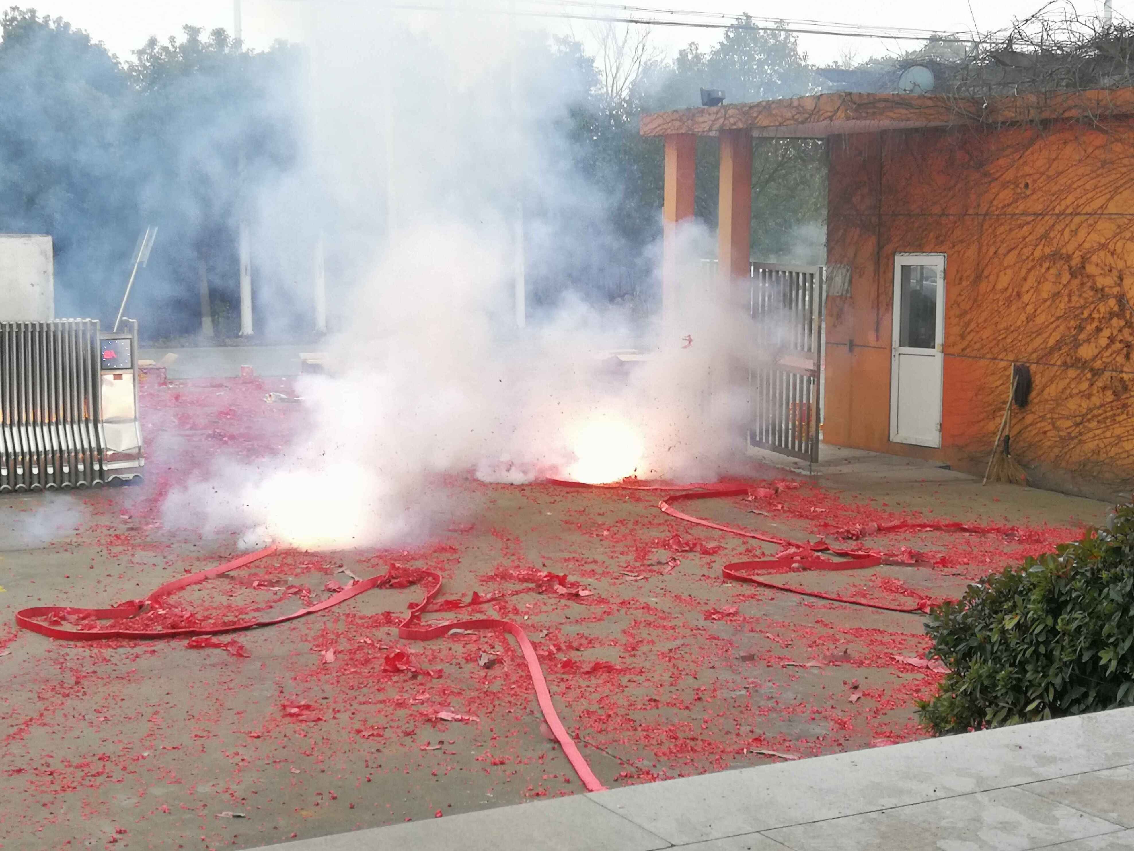 2019年2月12日(猪年初八)吉时8:48,原先淅淅沥沥下着的早春小雨嘎然而止。奥玛斯公司厂区大门前,公司潘总、李总、张总亲手点燃了“开门大吉”的8个大烟花礼炮。七彩烟花带着哨叫声个个奋勇向上,你追我赶地依次在空中美丽绽放。随后是由公司骨干点燃了8个千响的大红鞭炮。
