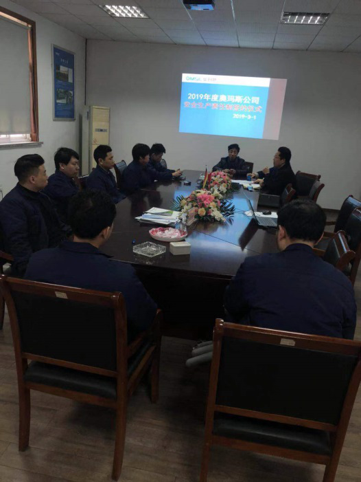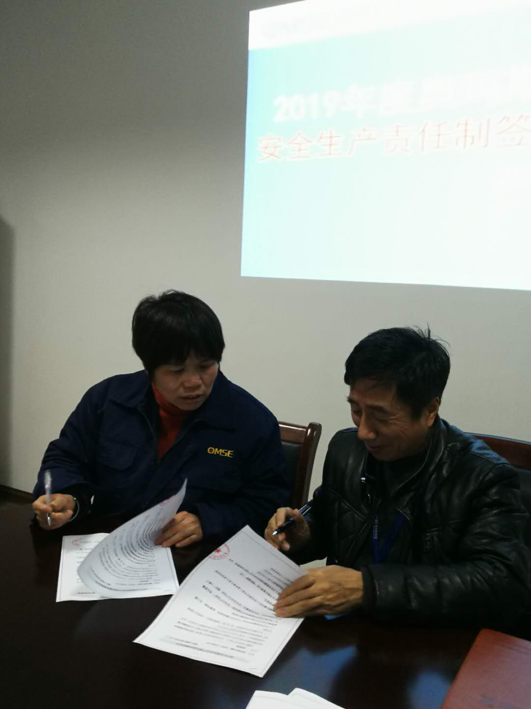 2019年3月1日下午4时,“2019年度奥玛斯公司安全生产责任制签约仪式”在公司一楼会议室如期举行。公司高层领导团队潘总,李总,张总全部列席。公司各部门经理、生产班组组长分别与潘伟荣总经理、生产部晋志强经理签约。